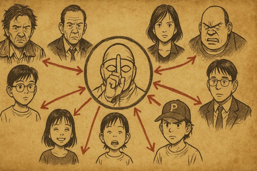 最大の見どころは、子供時代の落書きや儀式が大人社会の悲劇へ連結する“因果の再配線”を相関図で追える点にあります。