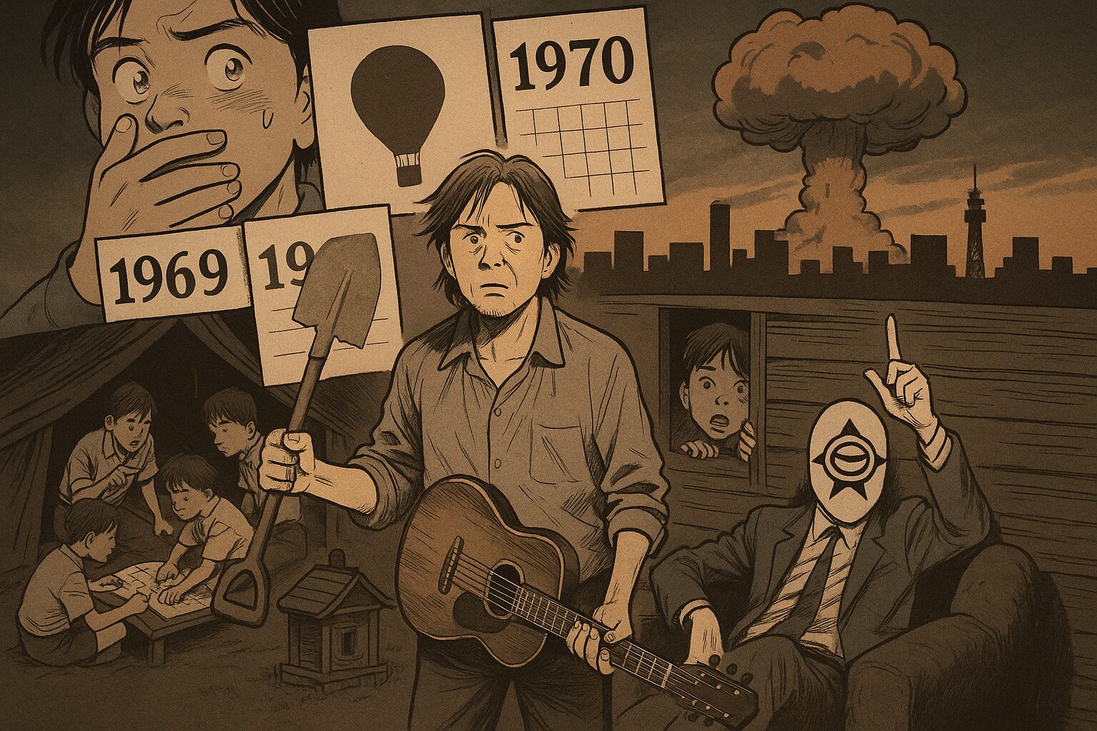 “血の大みそか”での群衆パニック、ケンヂの歌が持つ救済と反逆の二面性、カンナ視点での政治・宗教・メディアの共振、そしてフクベエ/カツマタを巡る正体の二重化。