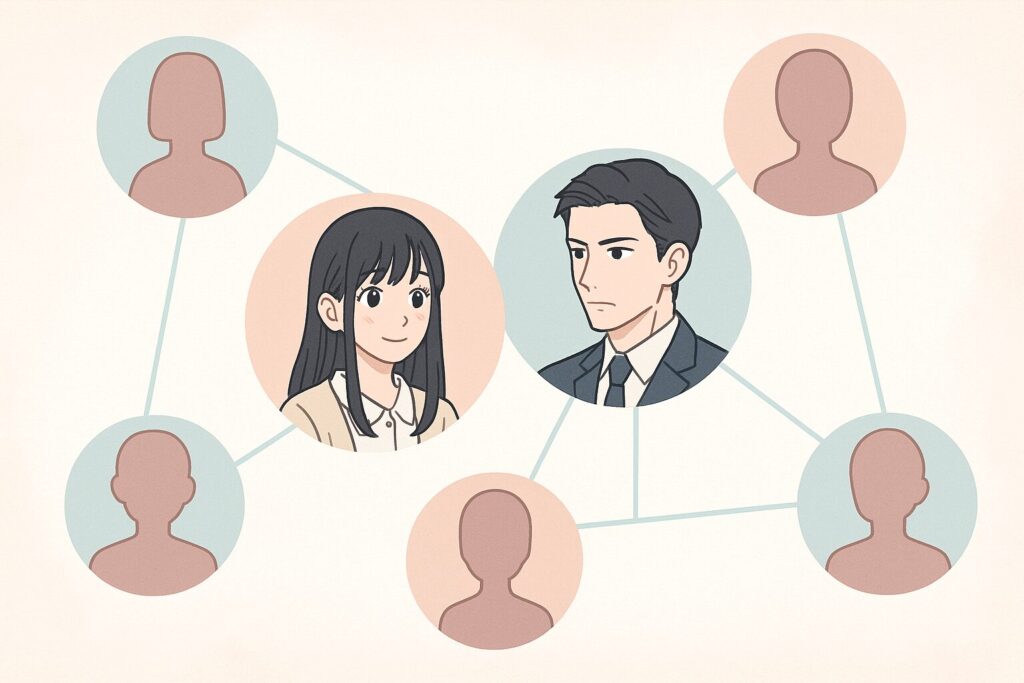 相関図で整理すると、作者さんが意図的に中心線(小春と黒崎)を太く保ち、周辺人物は“揺らし役”や“現実役”として機能させているのが分かります。
