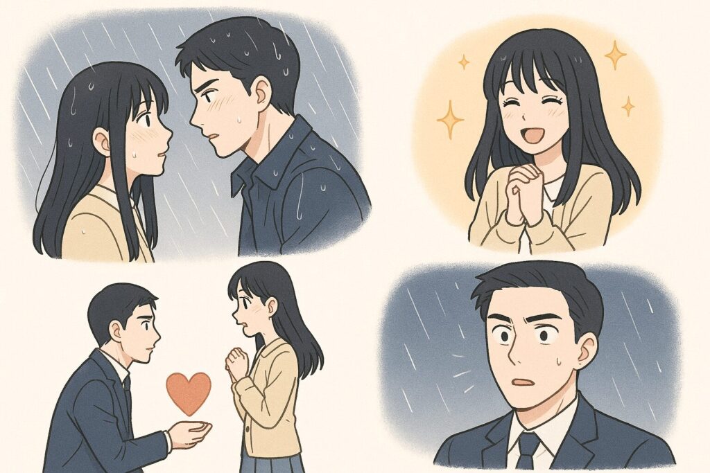 この時点で黒崎は、駆け引きよりも“告白の火力”で勝負するタイプだと分かるので、以降の展開がとにかく読みやすいです。