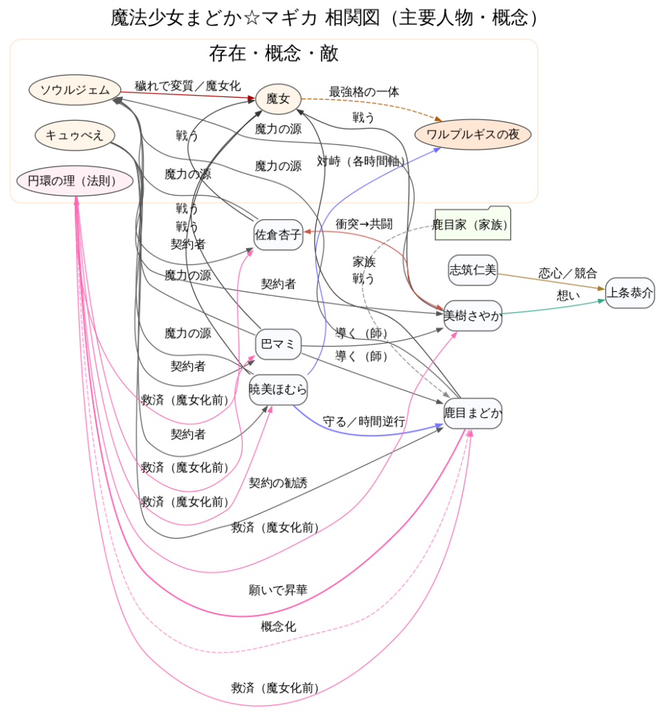 魔法少女まどか☆マギカの相関図で物語全体を理解し主要キャラクターの関係を一気に把握する