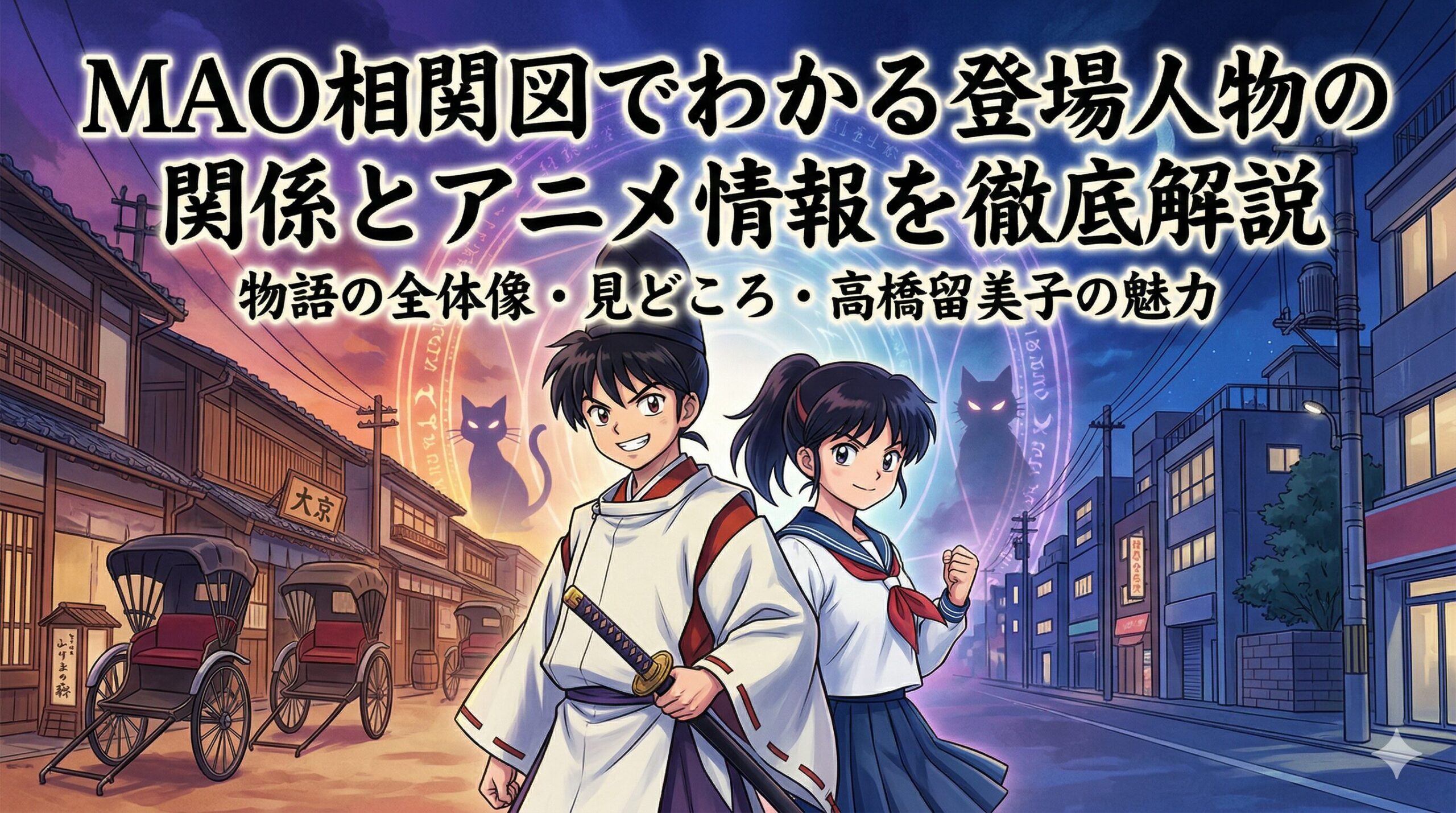 MAOの相関図が気になっている方へ向けて、本記事では物語のあらすじ、キャラクターの関係性、アニメ情報、見どころ、作者、高橋留美子先生の魅力、完結しているのかどうか、そしてどこで読めるのかまでまとめて解説します。