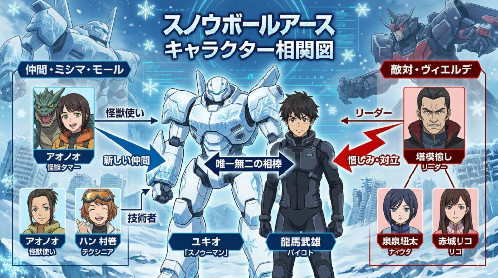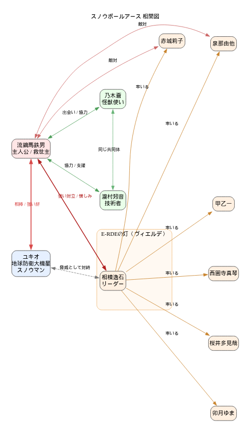 スノウボールアースの相関図で最も重要なのは、鉄男とユキオの絆を軸にしながら、新たな仲間と敵対勢力が交差して物語が広がる点です。